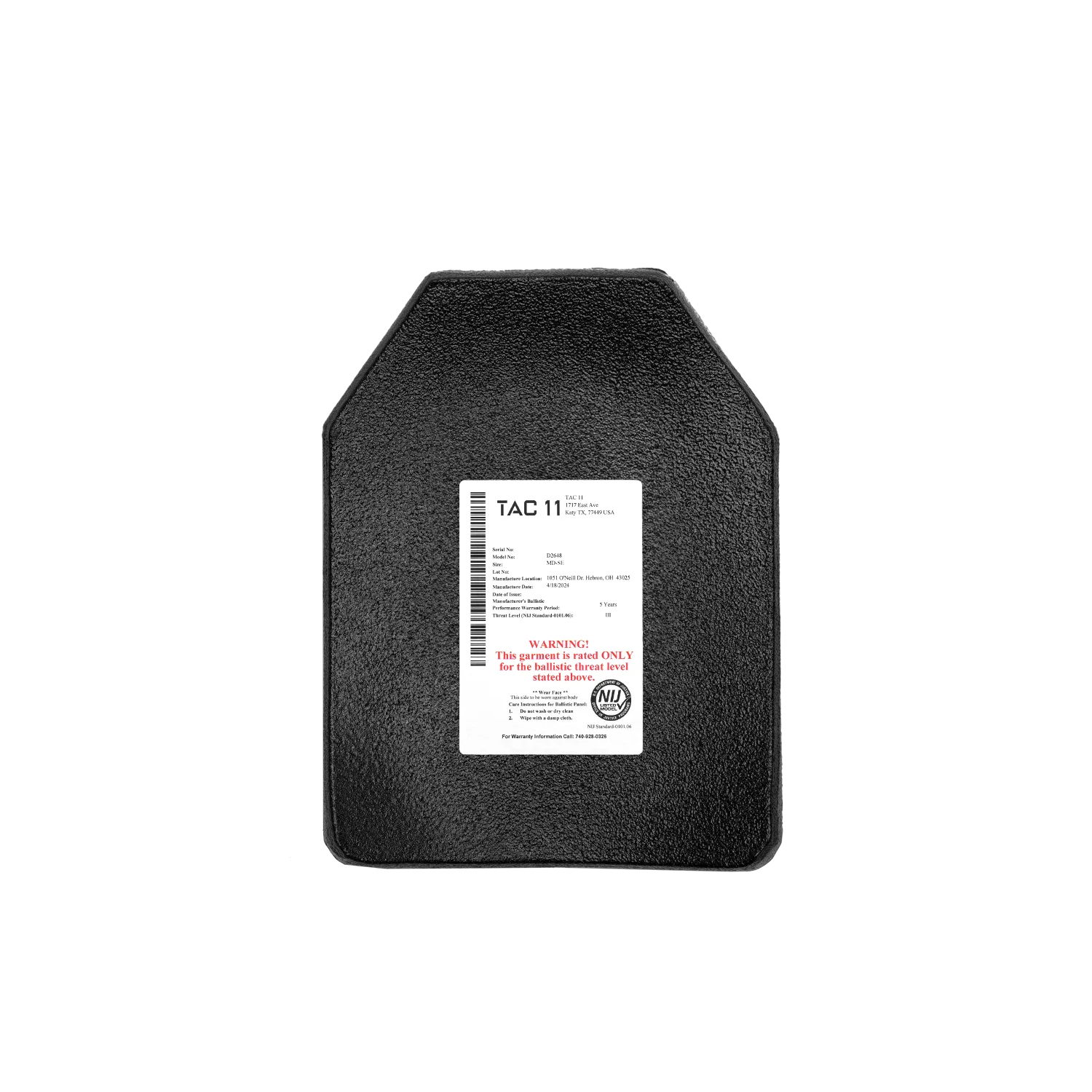 TAC 11 IVO-2 Armor Plate – NIJ Level III+, SAPI Cut